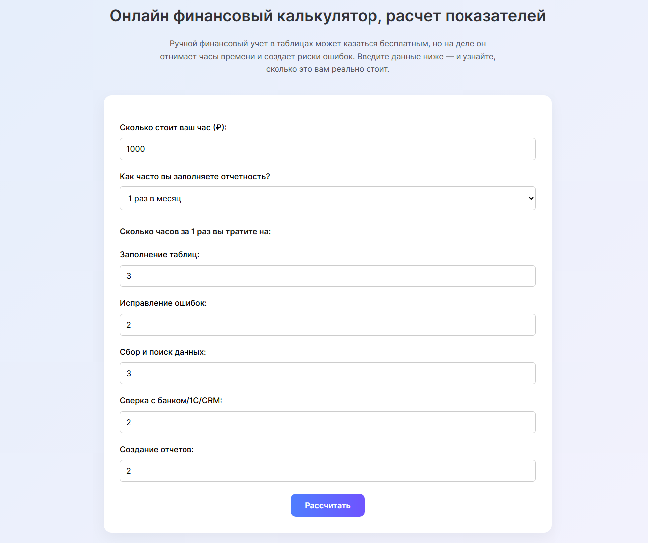 Чаще всего таблицы, которые кажутся бесплатными, на самом деле обходятся дороже, чем подписка на профессиональный сервис финучета. Вы можете проверить, сколько стоит финучет в таблицах для вашей компании, с помощью калькулятора. Если таблицы тоже «съедают» ресурсы компании вместо того, чтобы их приумножать, выберите более подходящий инструмент.